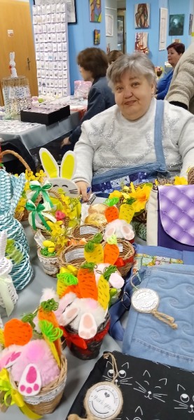 Naši členové se nejen svými výrobky mohli pochlubit, ale některé výrobky si mohli také zájemci zakoupit. Největší zájem byl o drátkové výrobky s velikonoční tématikou Katky Solčanové a velikonoční vajíčka mnoha podob a barev od Blanky Klouzalové.